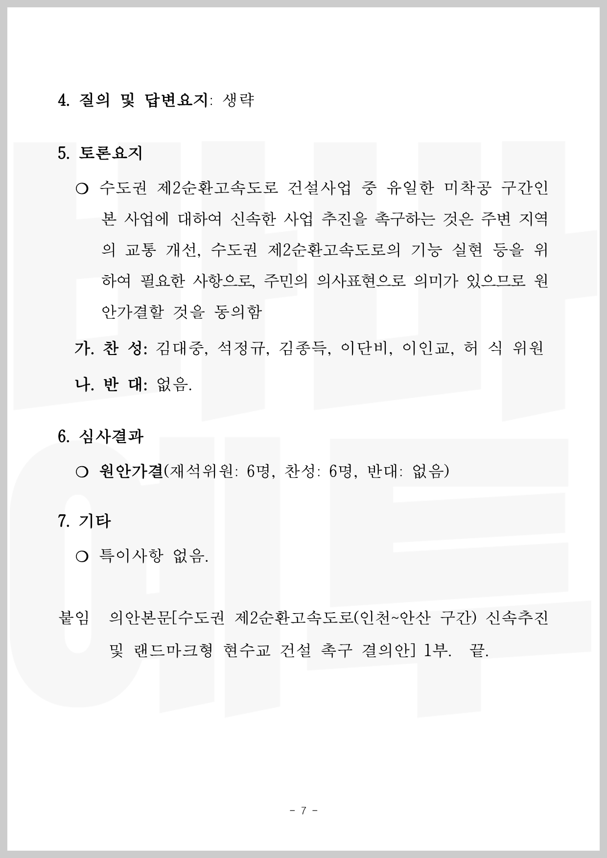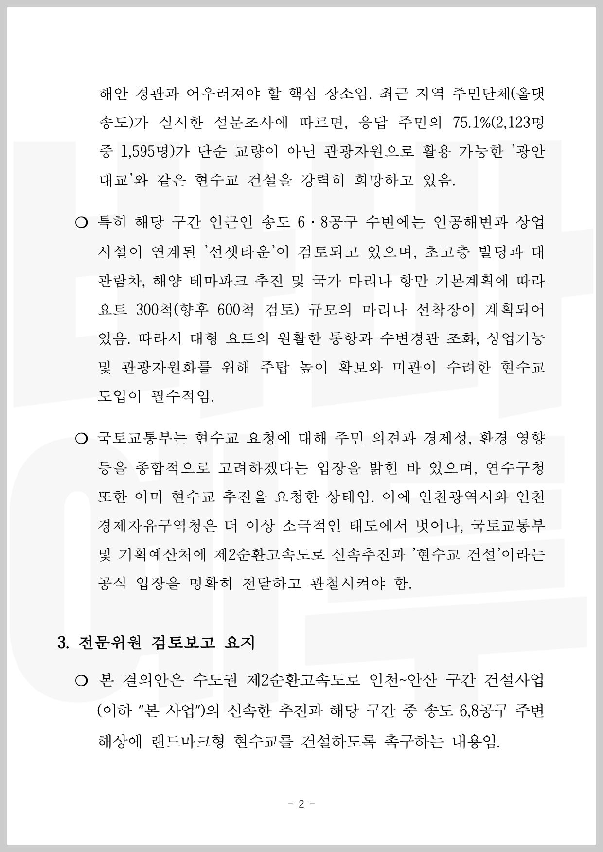 현수교 건설을 촉구하는 결의안 및 그에 대한 심사보고서입니다.